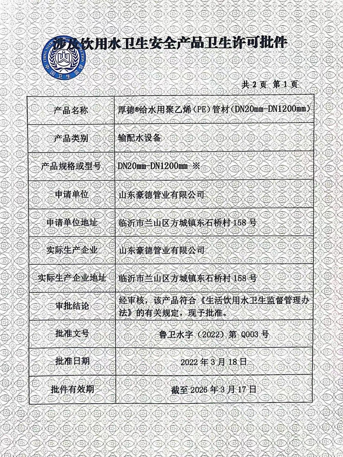 山東豪德管業(yè)有限公司豪德——專業(yè)pe管材生產廠家公司是聚乙烯PE管材管件生產建設基地,年產各類PE管材近億噸,綜合性能好。